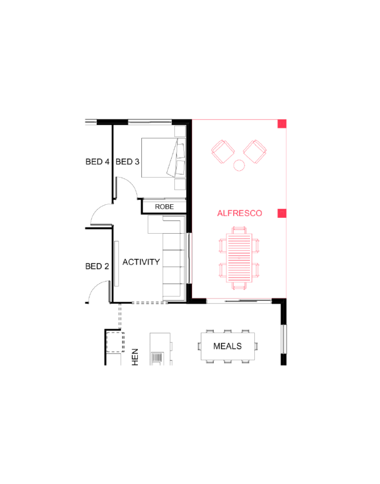 With this floor plan, there’s a cleverly positioned activity room in the kids’ bedroom zone, plus an oversized laundry with plenty of linen storage – perfect for the busy family. As with all house plans in our innovative Luma range that deliver style, more space, more flexibility and more luxury than ever before, the Cove 202 is available in your choice of façade, with an extensive selection of façade options to choose from. These include our modern Hamptons-style facades, which combine traditional Hamptons materials for an outstanding street appeal. View the floor plan and façade selection below!
