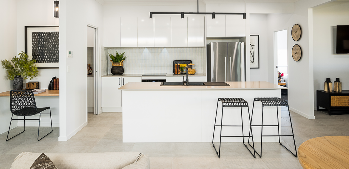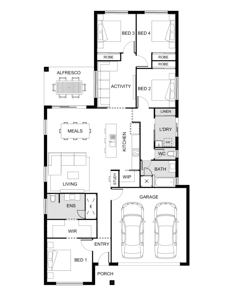 As soon as you walk in the front door and take in the Cove 202, you’ll know this is the house you’ve had your heart set on calling home. Featuring a walk-through robe and beautiful ensuite, the private and spacious master bedroom in this 4-bedroom, single-storey house plan is located at the front of the home away from the remaining bedrooms and is perfect for relaxing at the end of the day. This stylish and flexible Luma home design features a gourmet kitchen with island bench, walk-in pantry and a handy study nook, which adjoins the open plan living/dining area that leads to the alfresco.